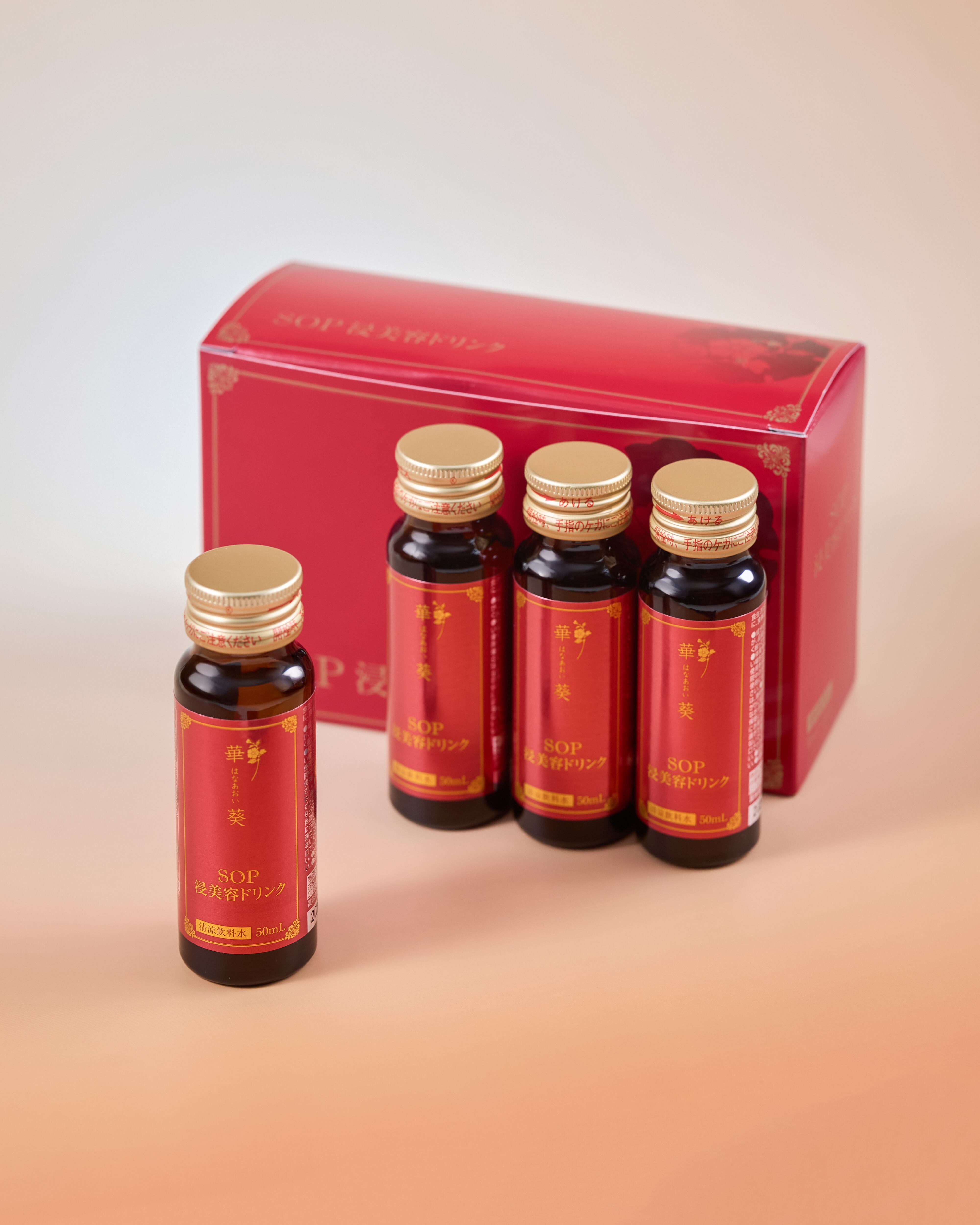 次世代美容成分「SOP」をメインに美容成分を内側から補給する高浸透性美容ドリンクです。ローカロリーの飲みきりタイプに仕立てました。女性の美容とカラダの健康だけでなく、ご家族も一緒にお楽しみいただけます。